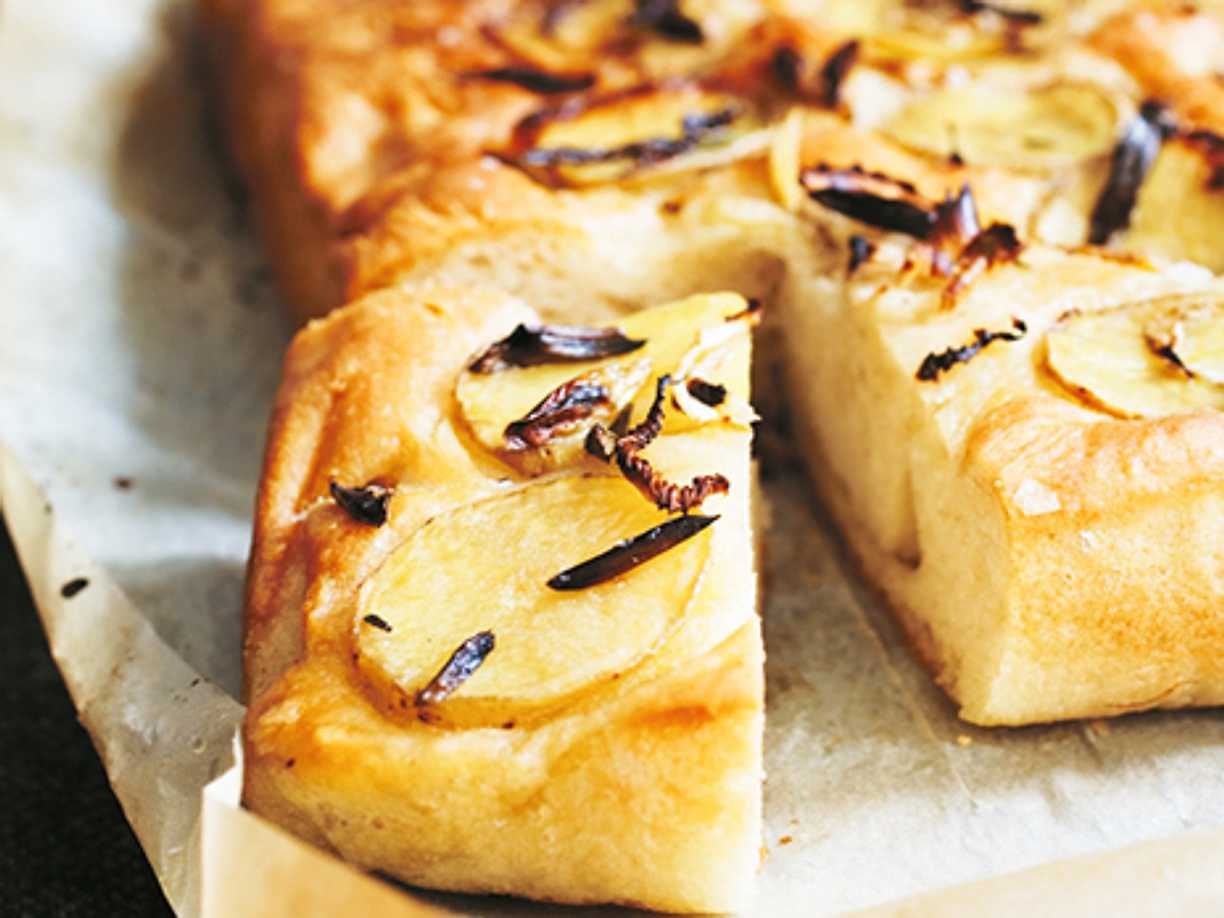 Örtpanerad kolja med potatis, stekt lök och brynt smör