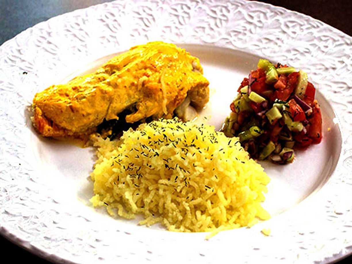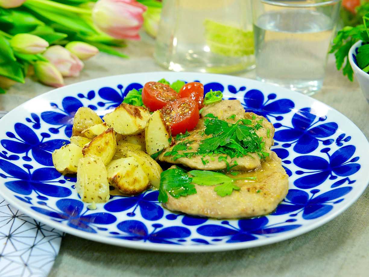 Vitlöksmarinerad fläskfilé ”rackare i Tjeckien” med tartarsås och ugnsbakad potatis
