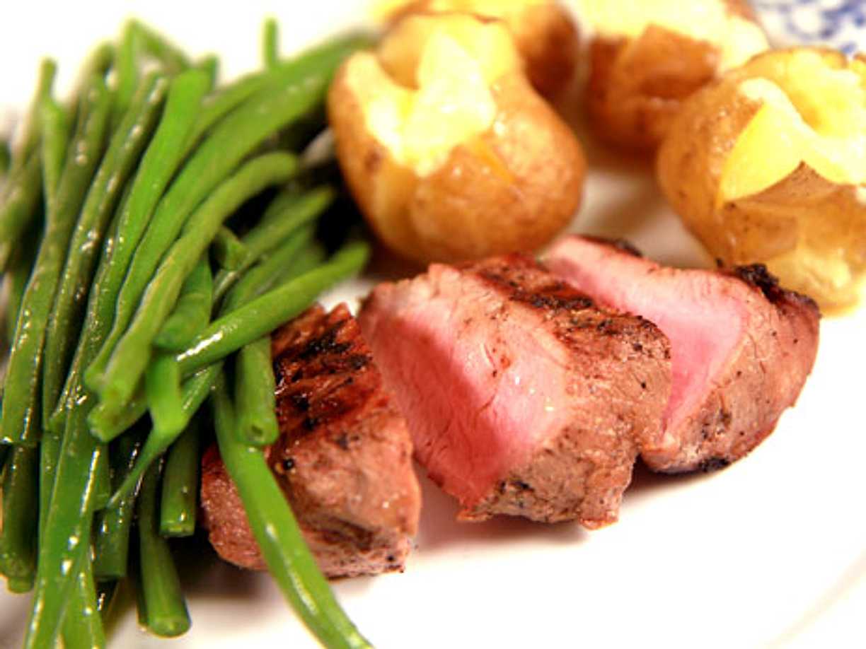 Helgrillad oxfilé med bourbonsås, helstekt potatis samt haricots verts