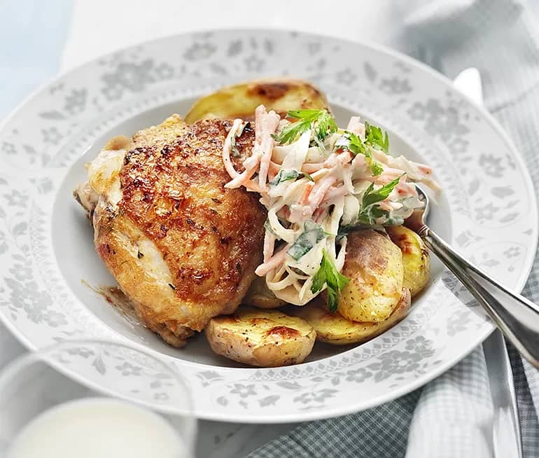Kyckling med coleslaw och rostad potatis