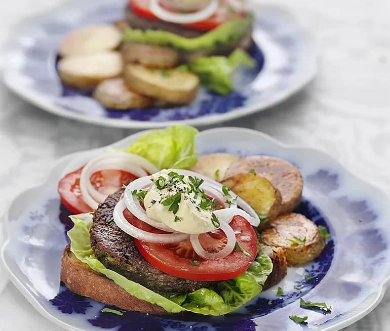 Linsburgare med rostad potatis