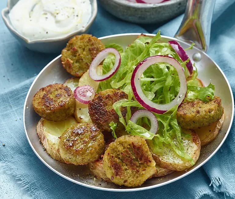 Falafel med vitlöksyoghurt och rostad potatis