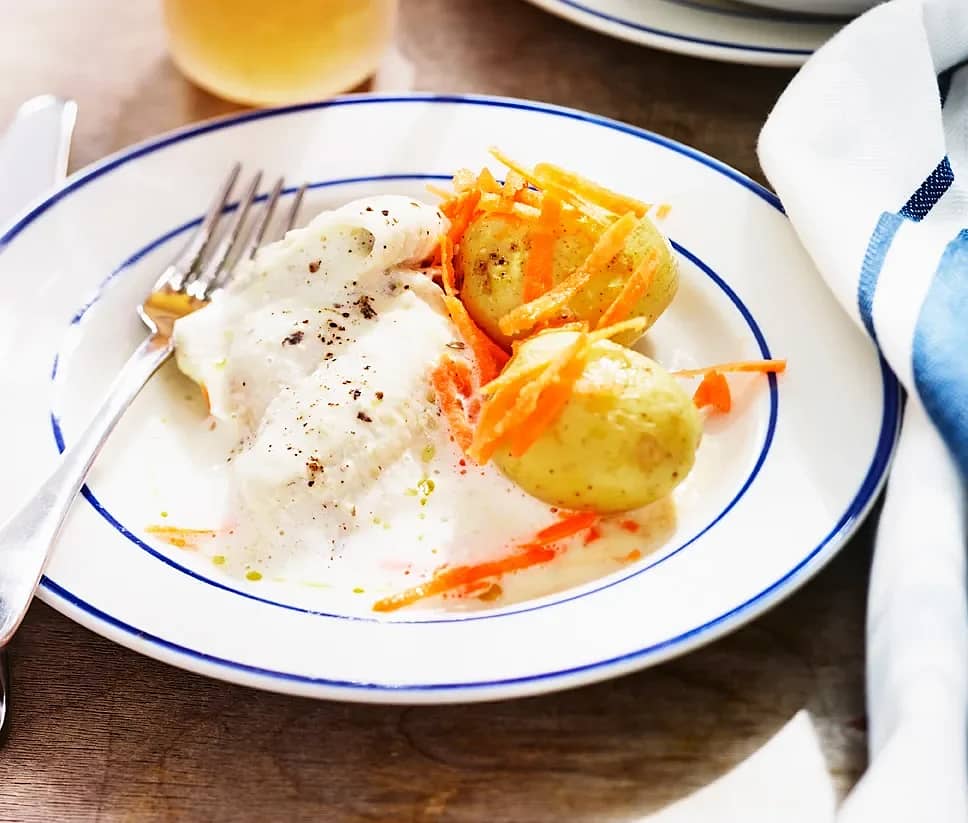 Torsk i senapssås med pressad potatis