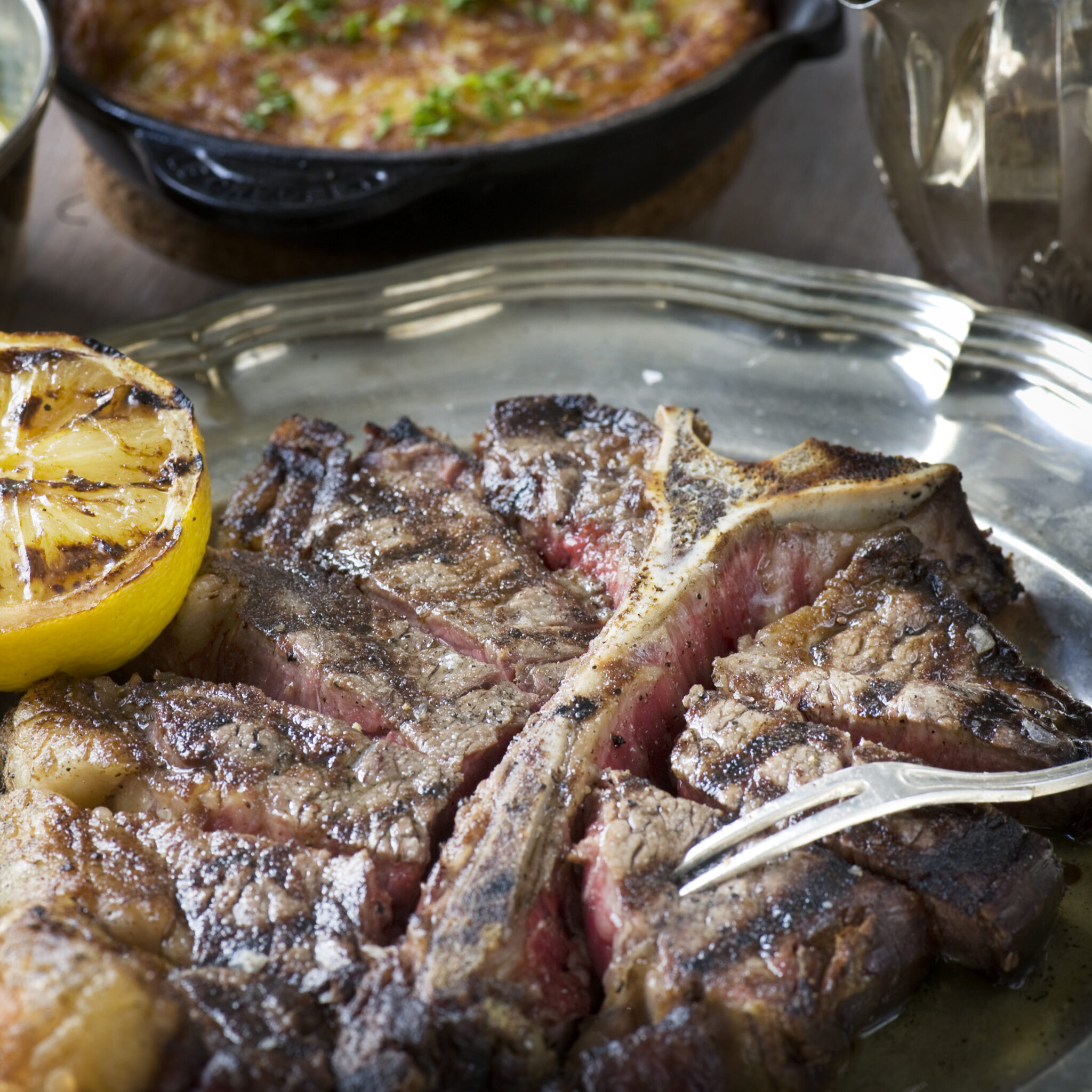 Porterhouse steak med hash brown och stuvad potatis