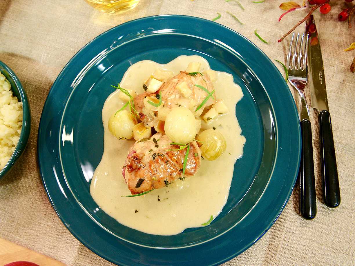 Kycklingrullader med cidersås och pressad potatis