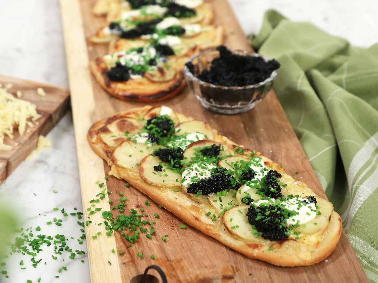 Potatis- och lökpaj med löjrom