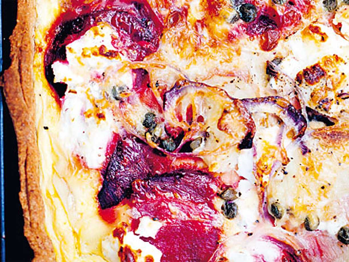 Långpannepaj med rödbetor, potatis och getost