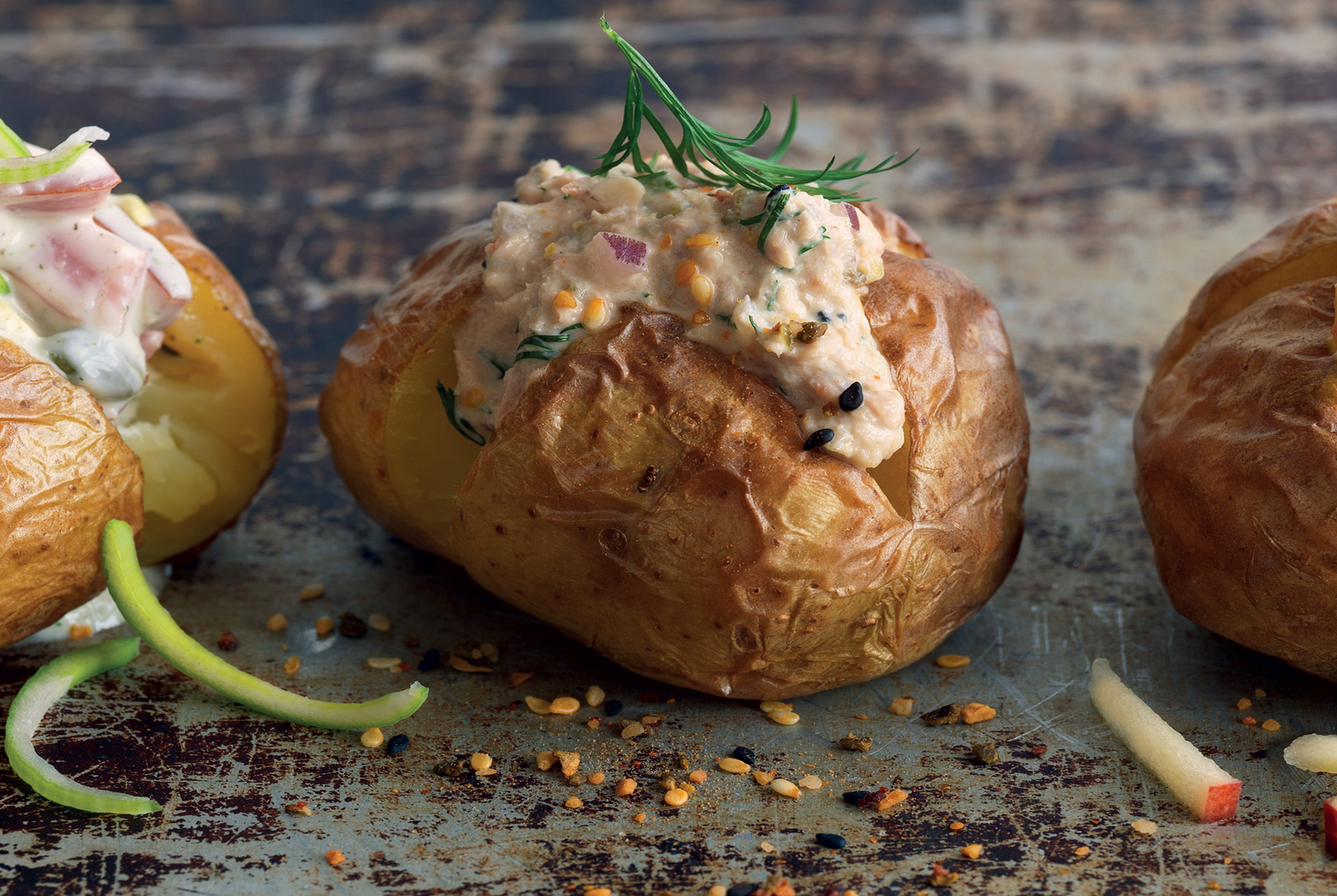 Bakad potatis med äpplig skinkröra