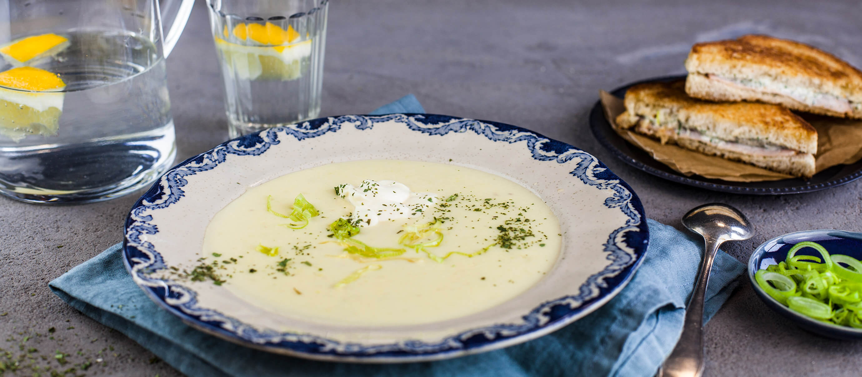 Potatis- & purjolökssoppa med ramslökstoast