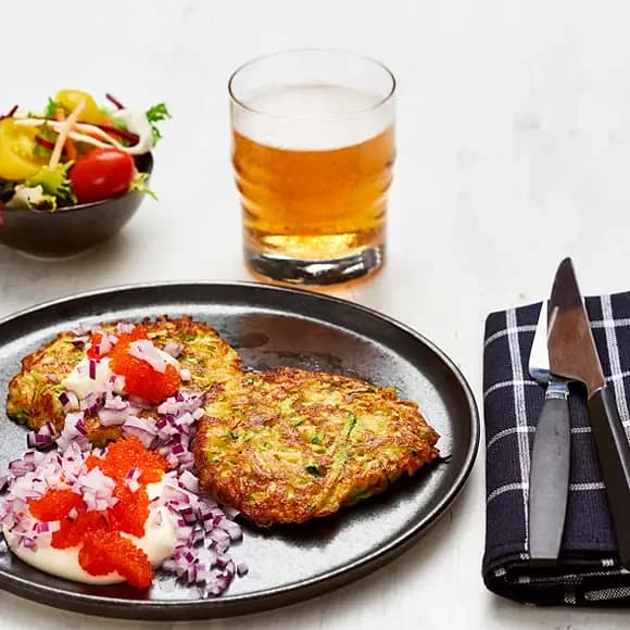 Potatis- och zucchiniplättar med tångkaviar