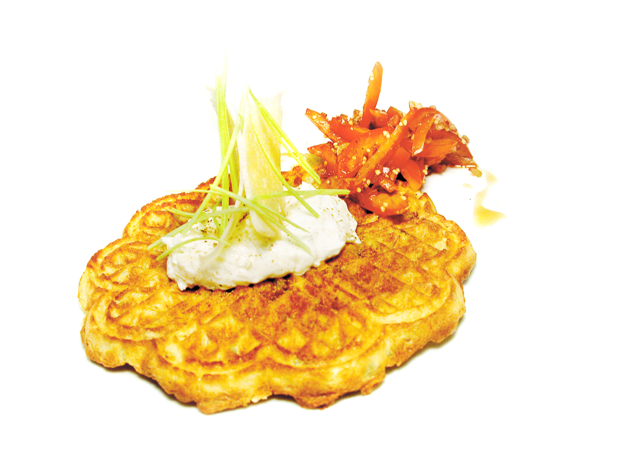 Potatis och purjolöksvåfflor med parmesancréme