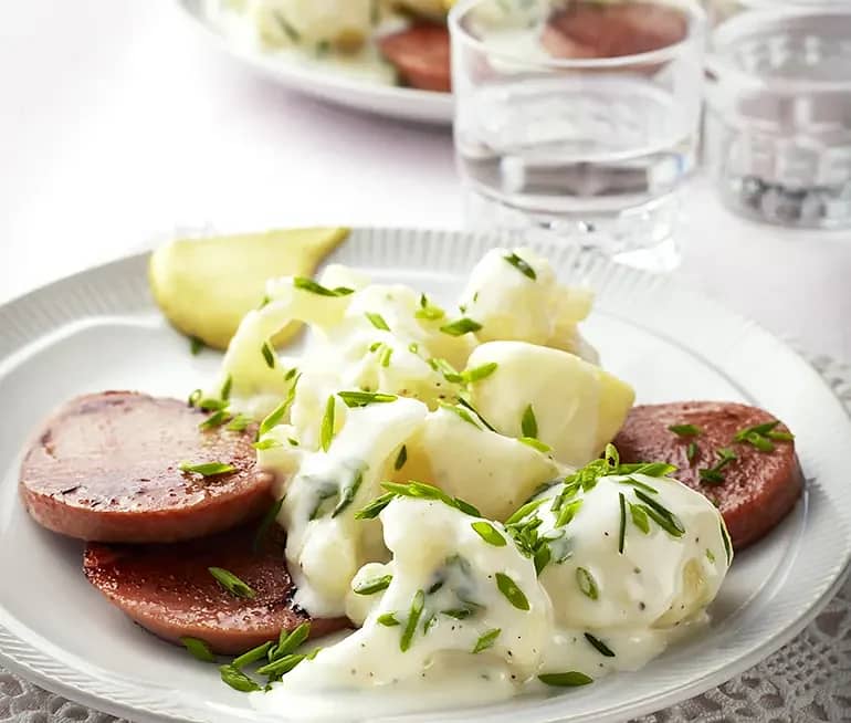 Timjanköttbullar i gräddsås med ostgratinerad potatis