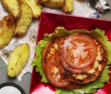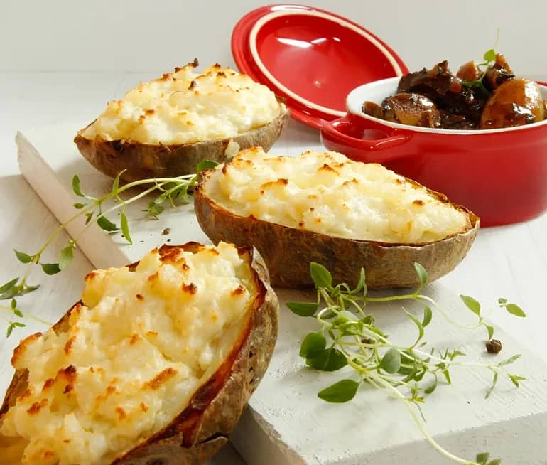 Ostfyllda köttfärsbiffar med ugns stekta potatis