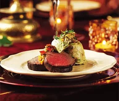 Oxfilé provencale med potatisbakelse, svamp och persiljekräm