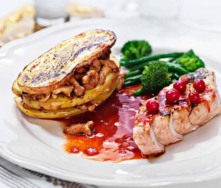 Ugnsstekt fläskfilé med lingonsås och potatisbakelse