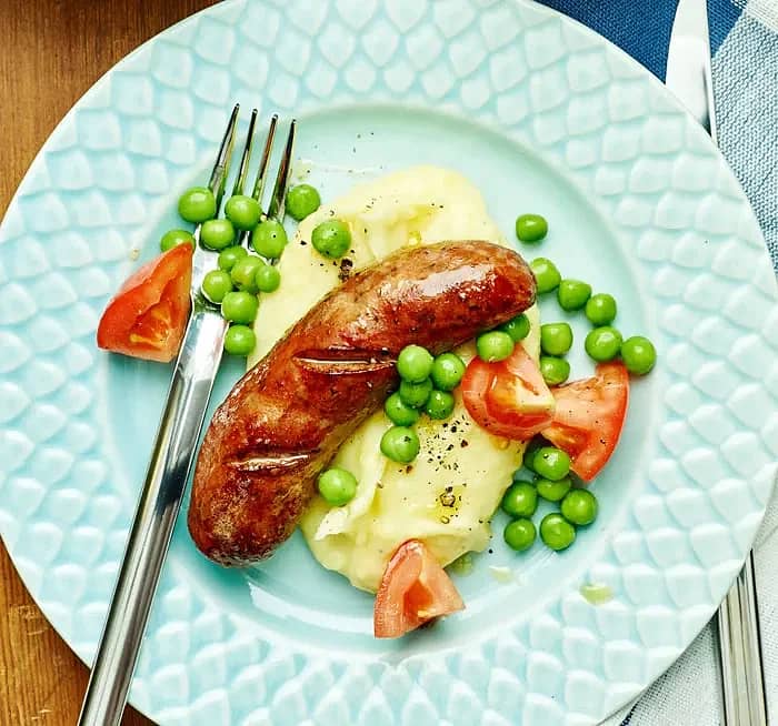 Salsiccia med potatismos och ärtor