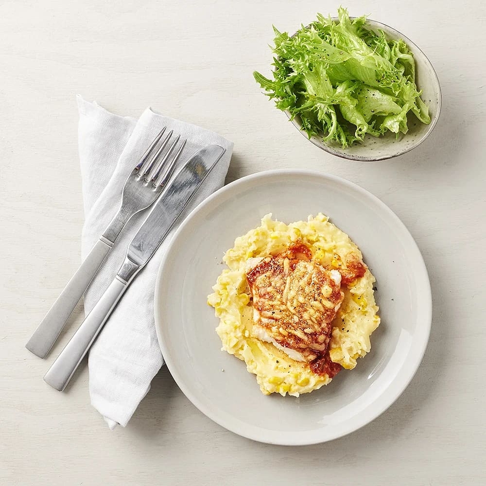 Ugnsbakad tacotorsk med potatismos