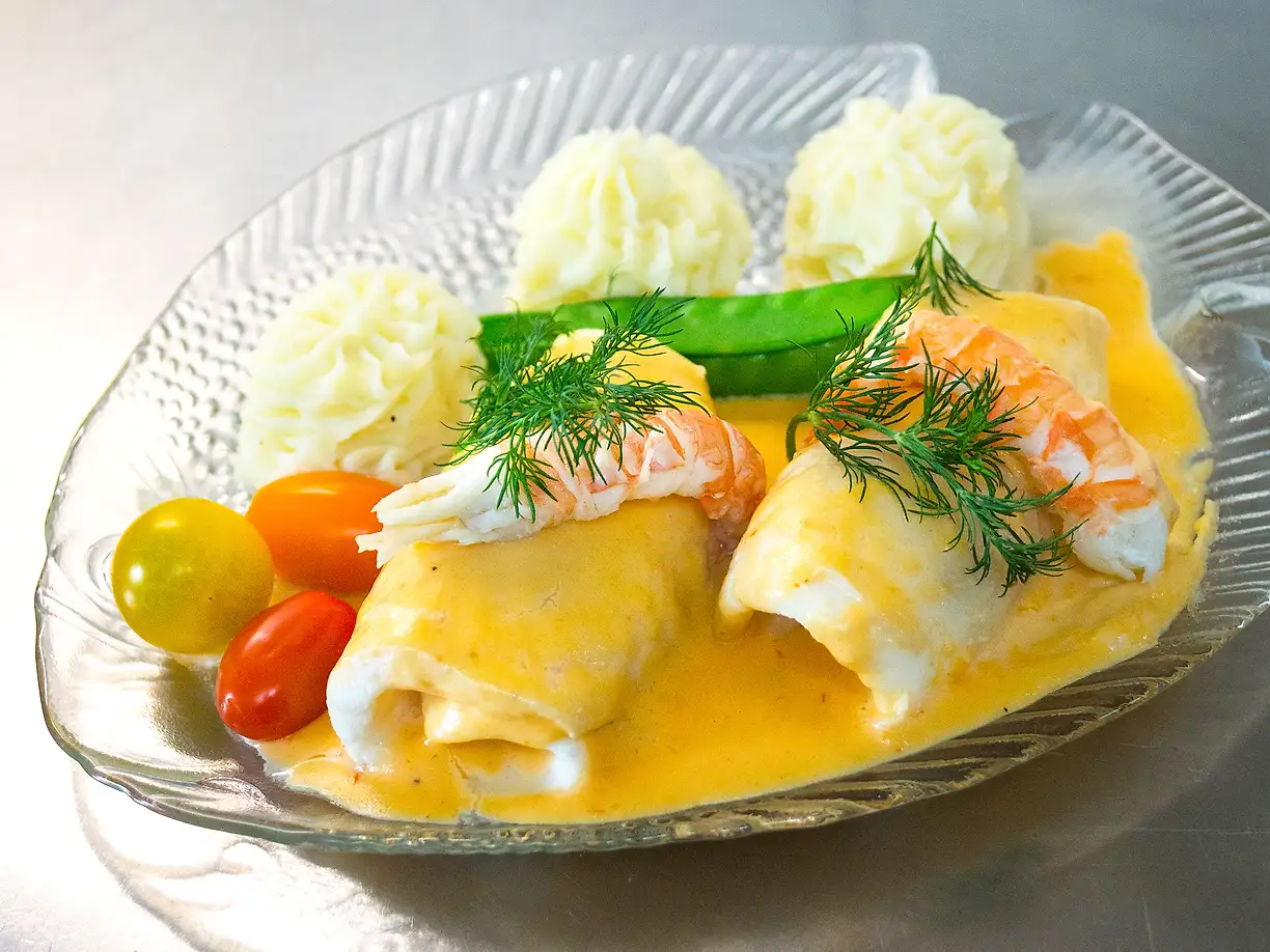 Bergtungafiléer med potatismos och kräftor