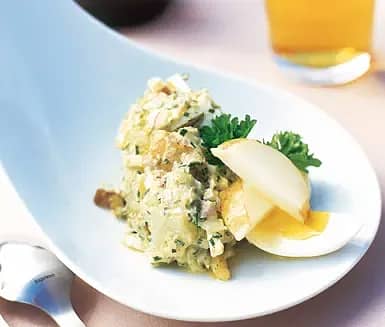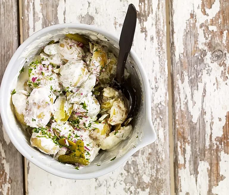 Potatissallad "double fun" med kallrökt lax och persiljemajonnäs