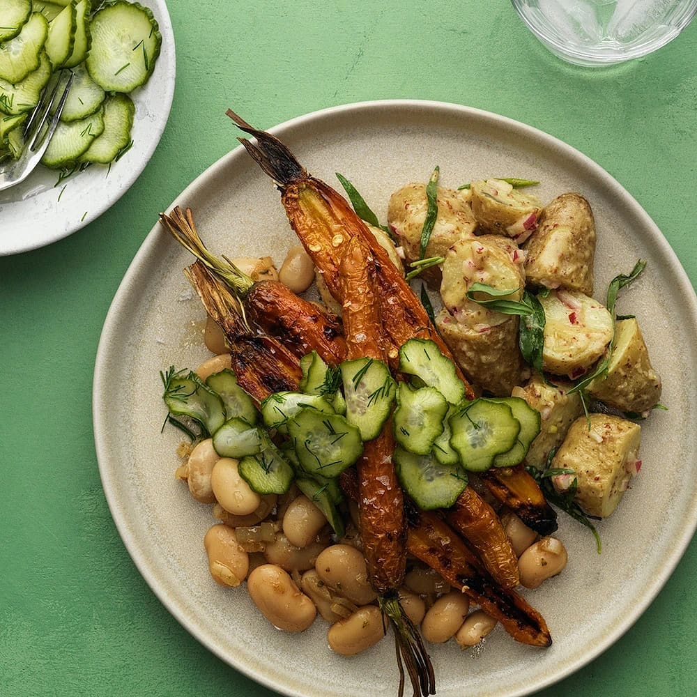 Helgrillad lax med kummin och fänkål med dillig potatissallad
