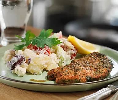 Grillad kycklingfilé med västerbottensslungad potatissallad
