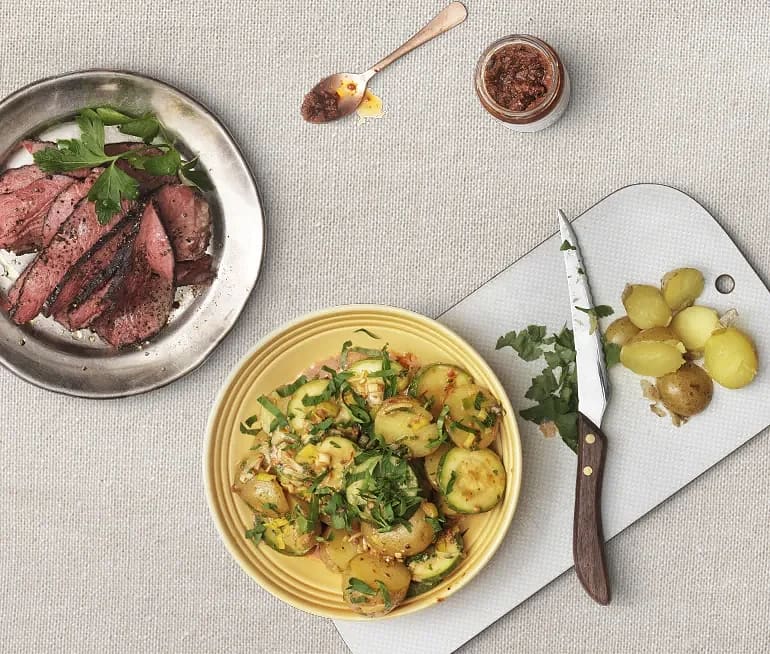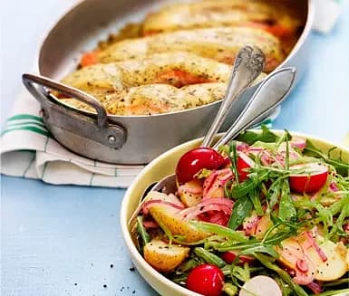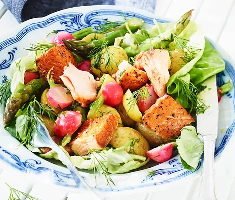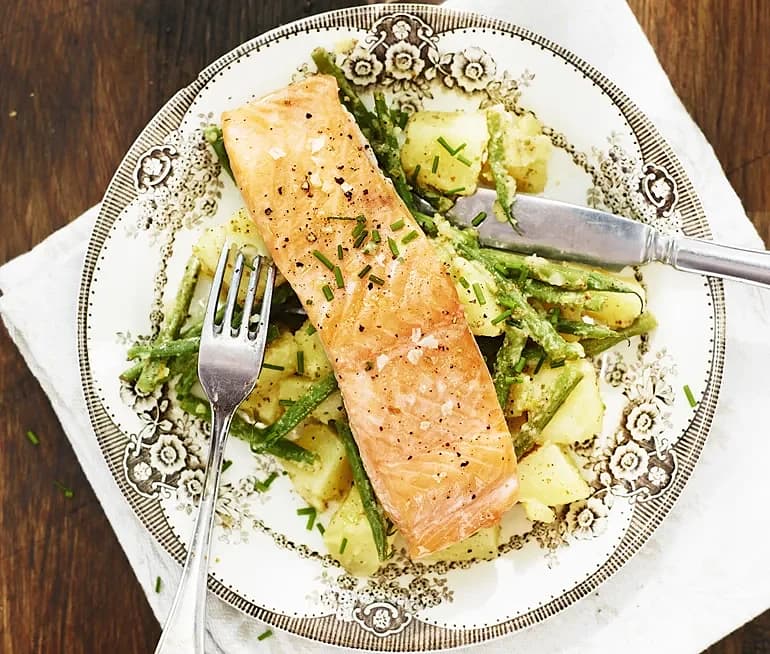 Jessicas smör- och chilistekta lax med ljummen potatissallad