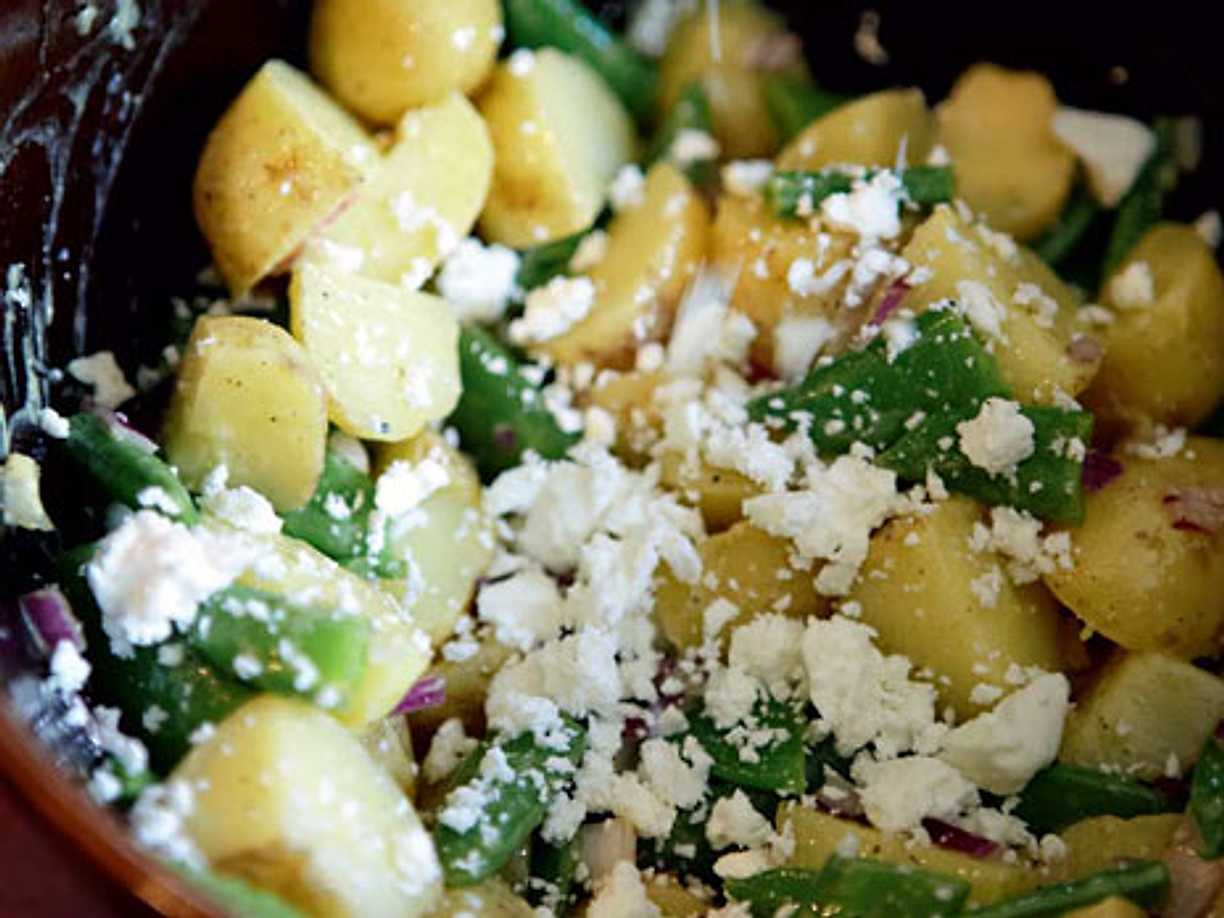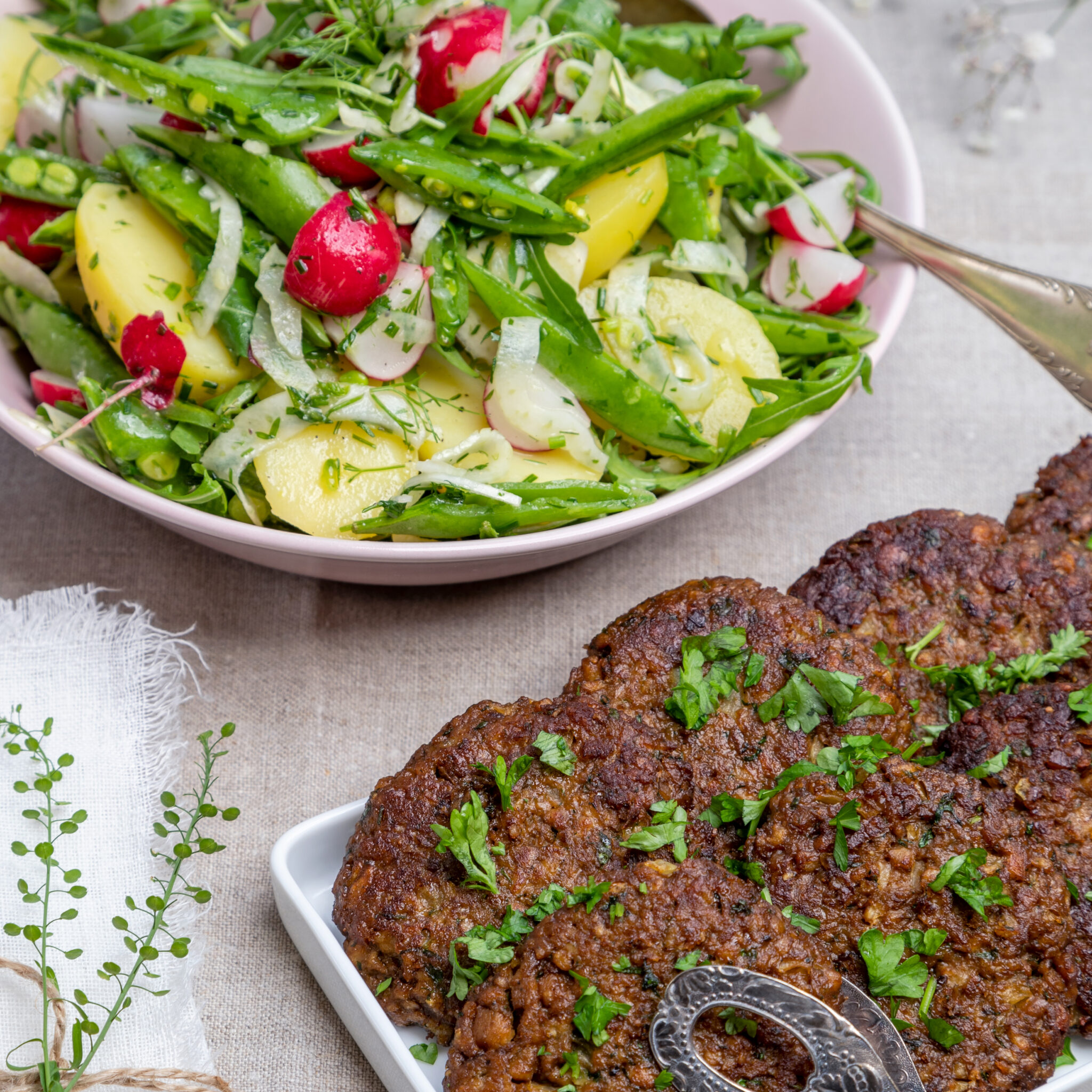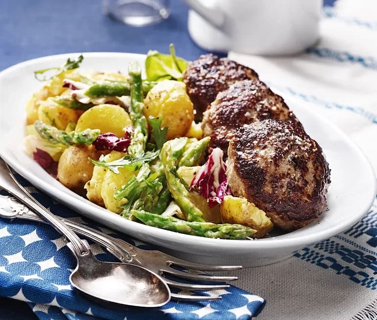 Lammfärsbiffar med varm potatissallad och fetaostkräm
