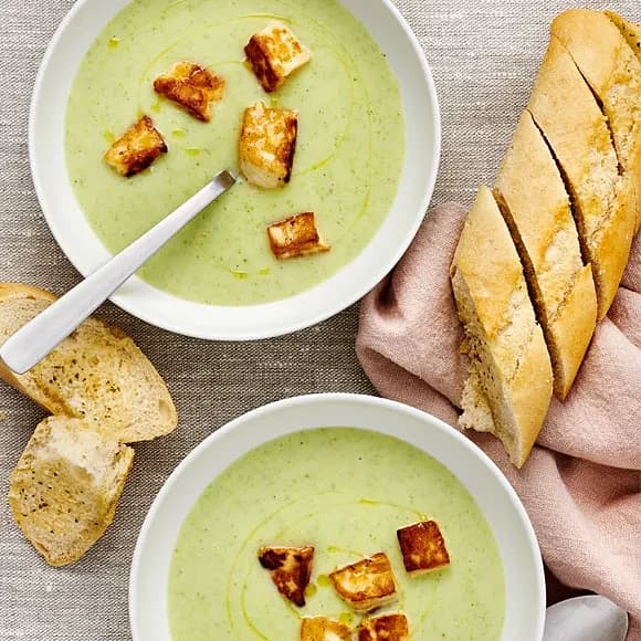 Broccoli- och potatissoppa med halloumi