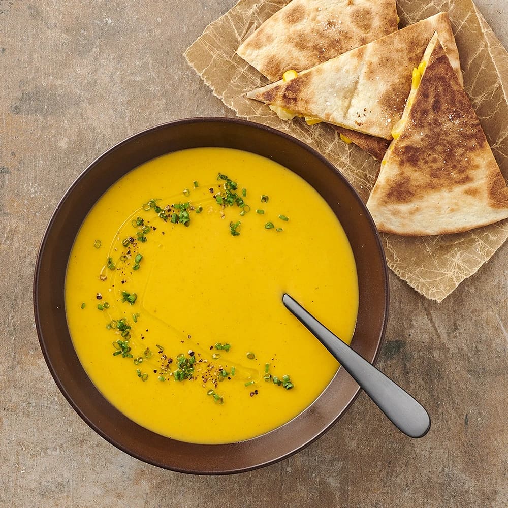 Majs- och potatissoppa med tortillachips