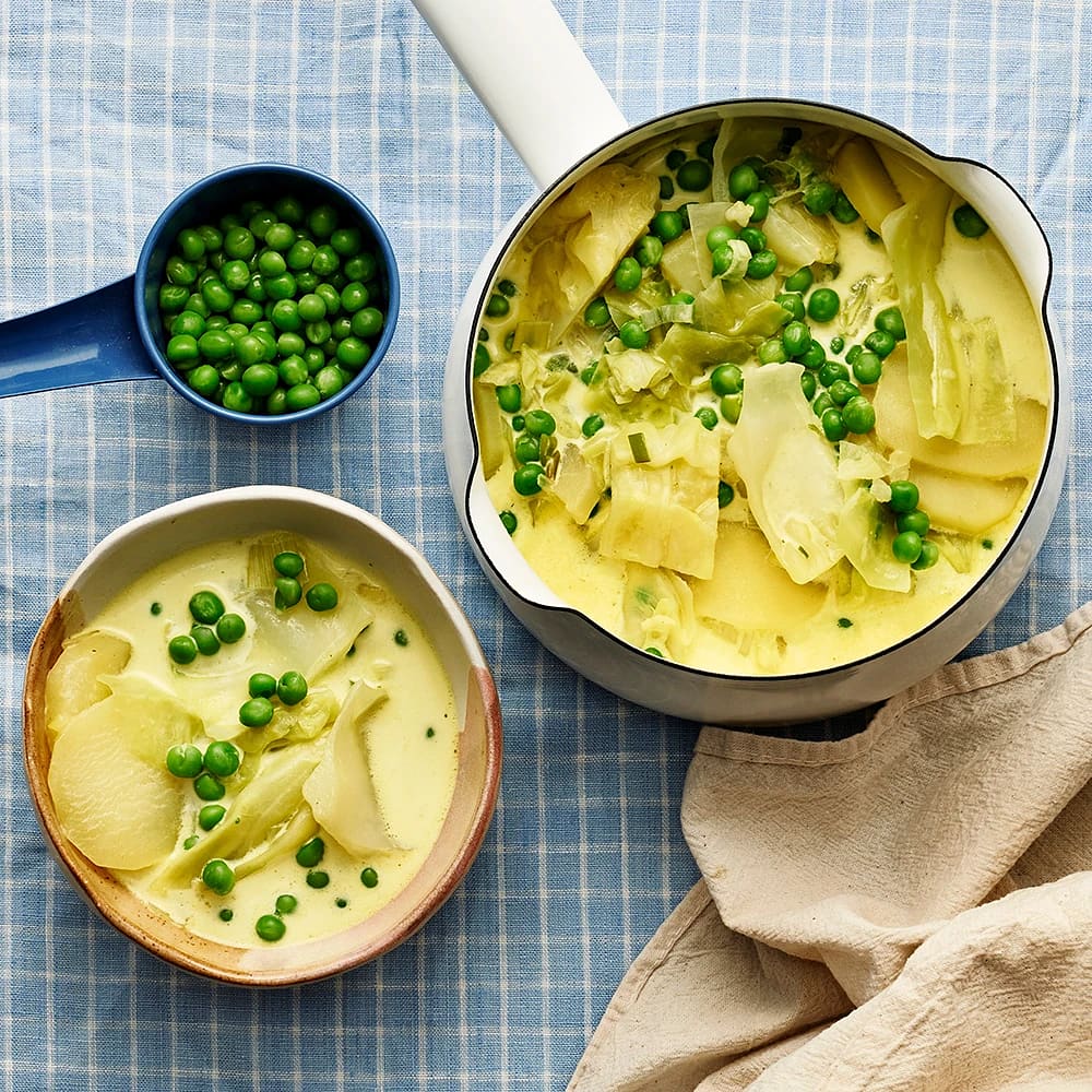 Potatissoppa med vitkål och ärtor