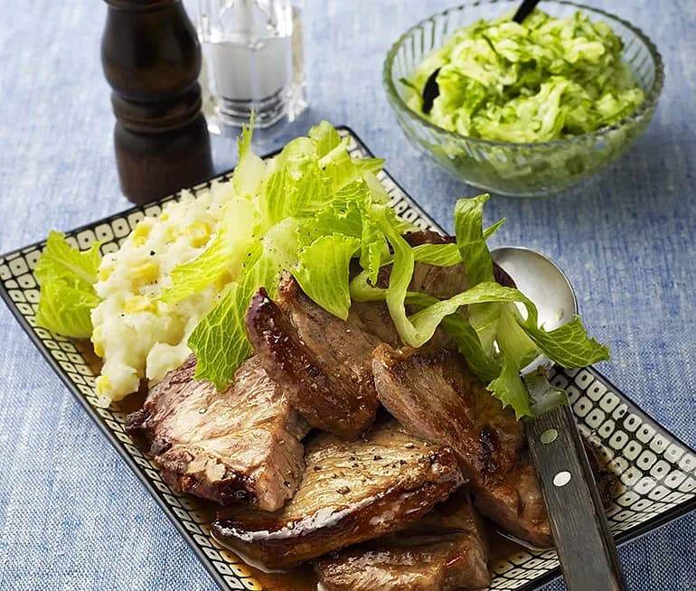 Honungsstekt karré med majs och potatisstomp