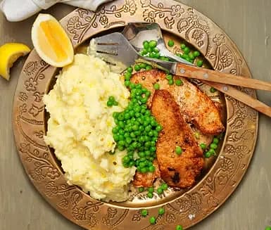 Fiskgratäng med citronsås och potatisstomp