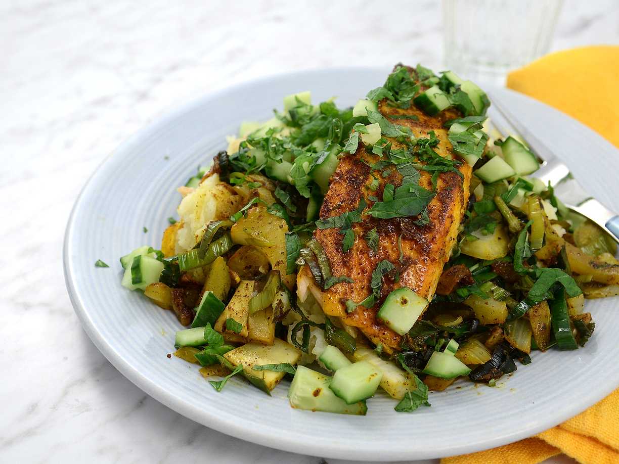 Stekt lax med potatisstomp