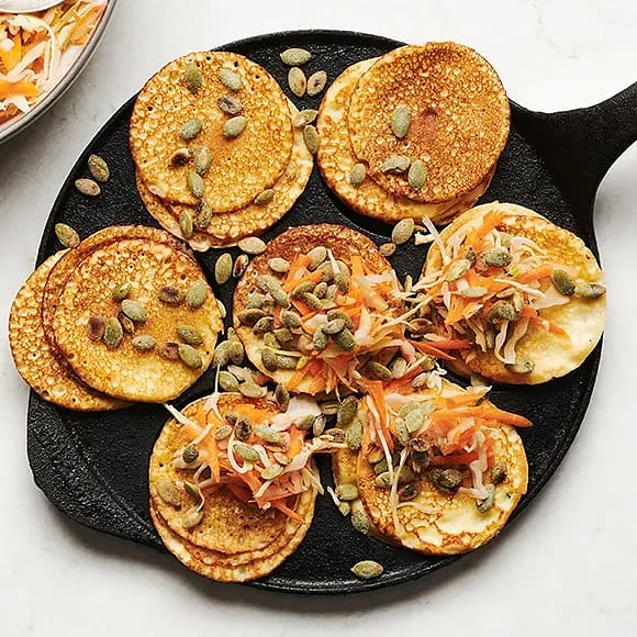 Blomkålsplättar med råkostsallad och saltrostade pumpakärnor