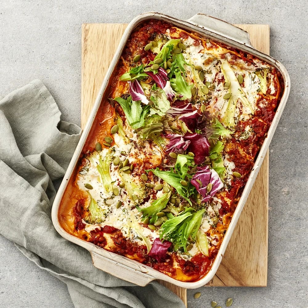 Broccolilasagne med pumpakärnor