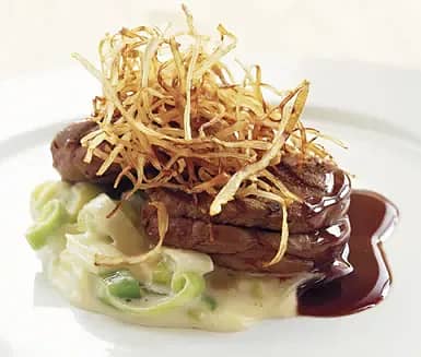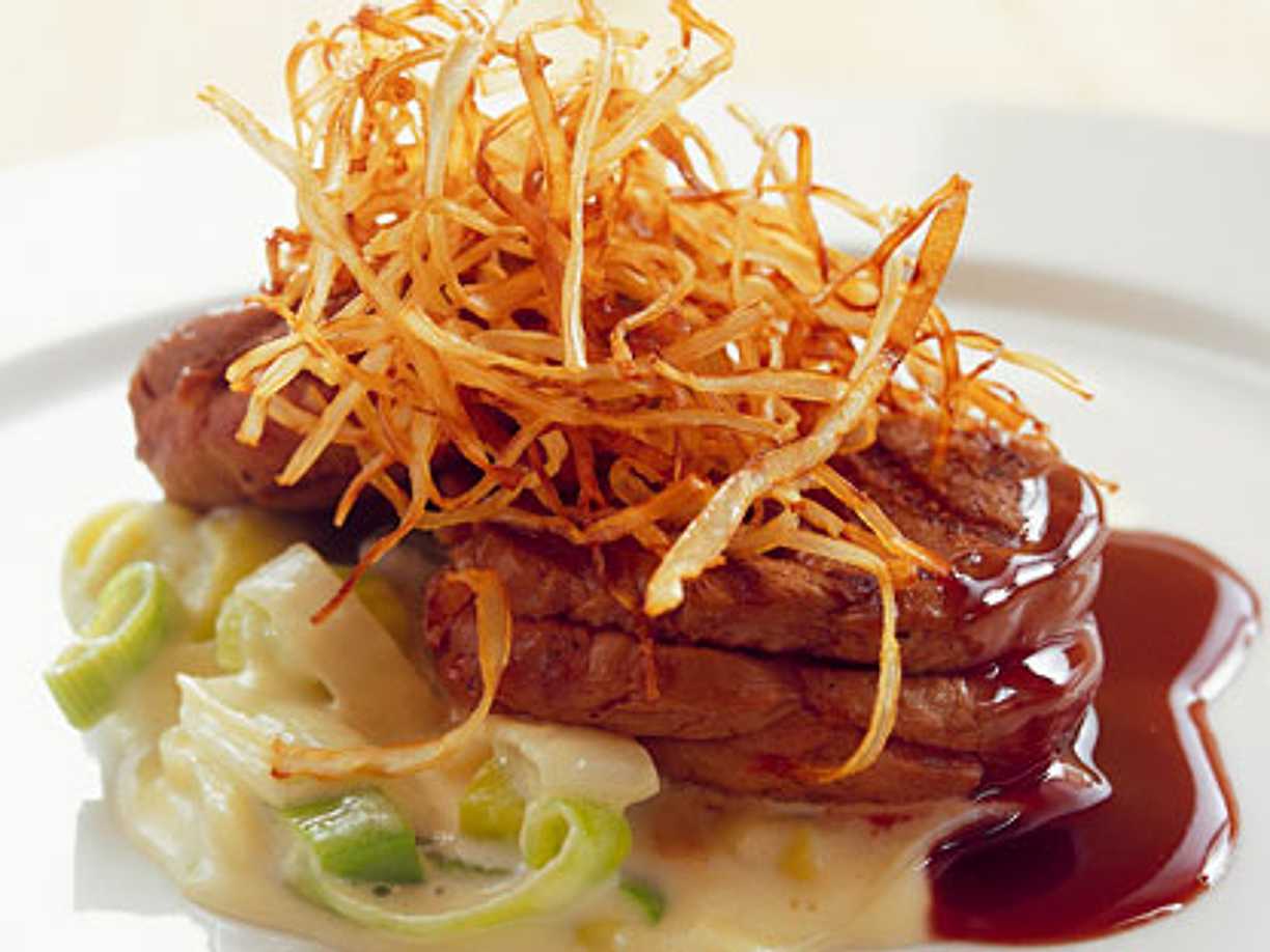 Rådjursmedaljonger med gräddkokt purjolök och friterad selleri