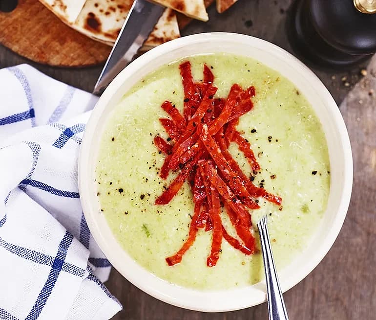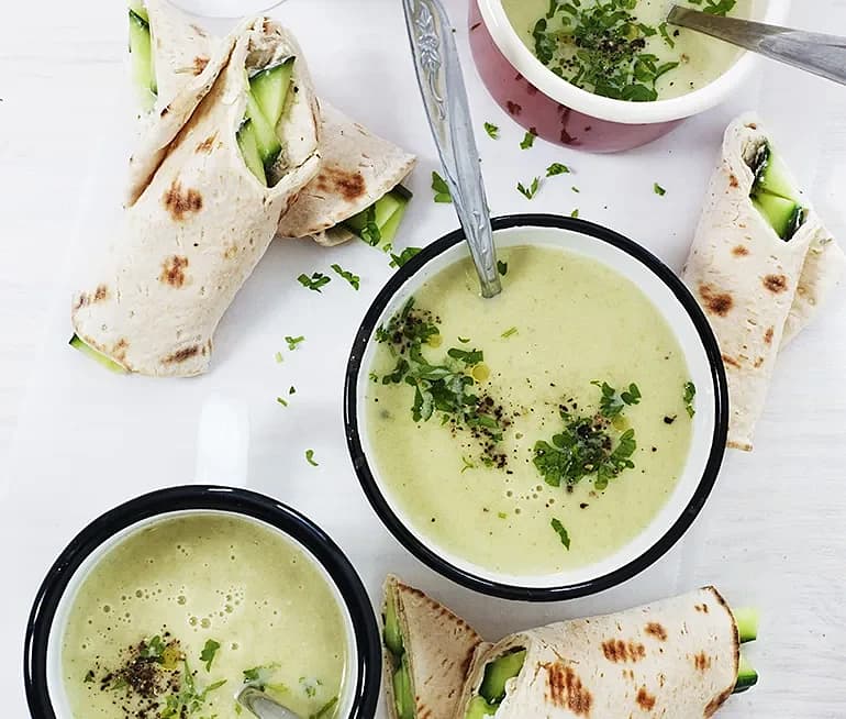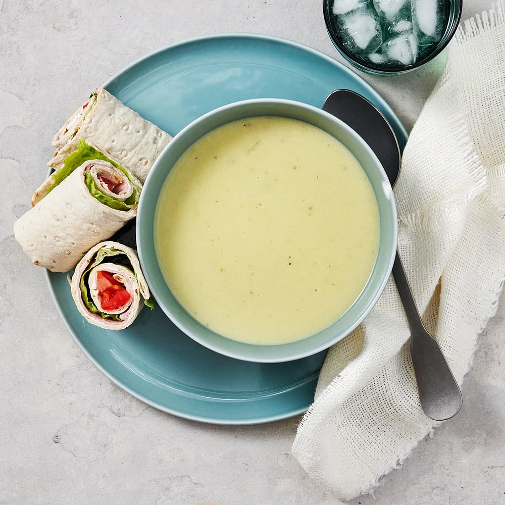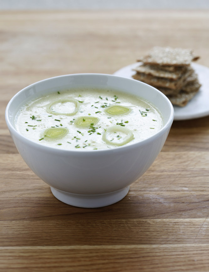 Potatis- och purjolökssoppa med tunnbrödrulle