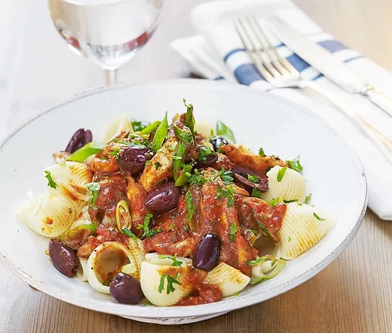 Pasta puttanesca med kyckling