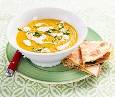 Morotsoppa med lime och ingefära och quesadillas