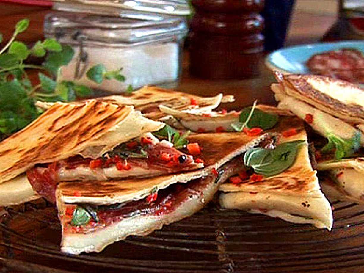 Quesadillas med ädelost, honung och valnötter