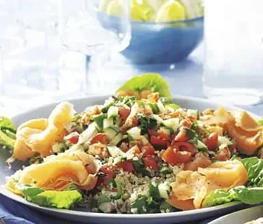 Tabbouleh på quinoa med lax och kräftstjärtar