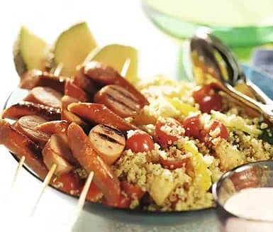 Quinoasallad med korvspett