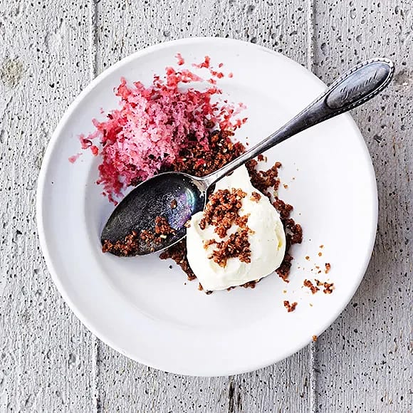 Vaniljglass med stekt rågbröd och fryst äpple