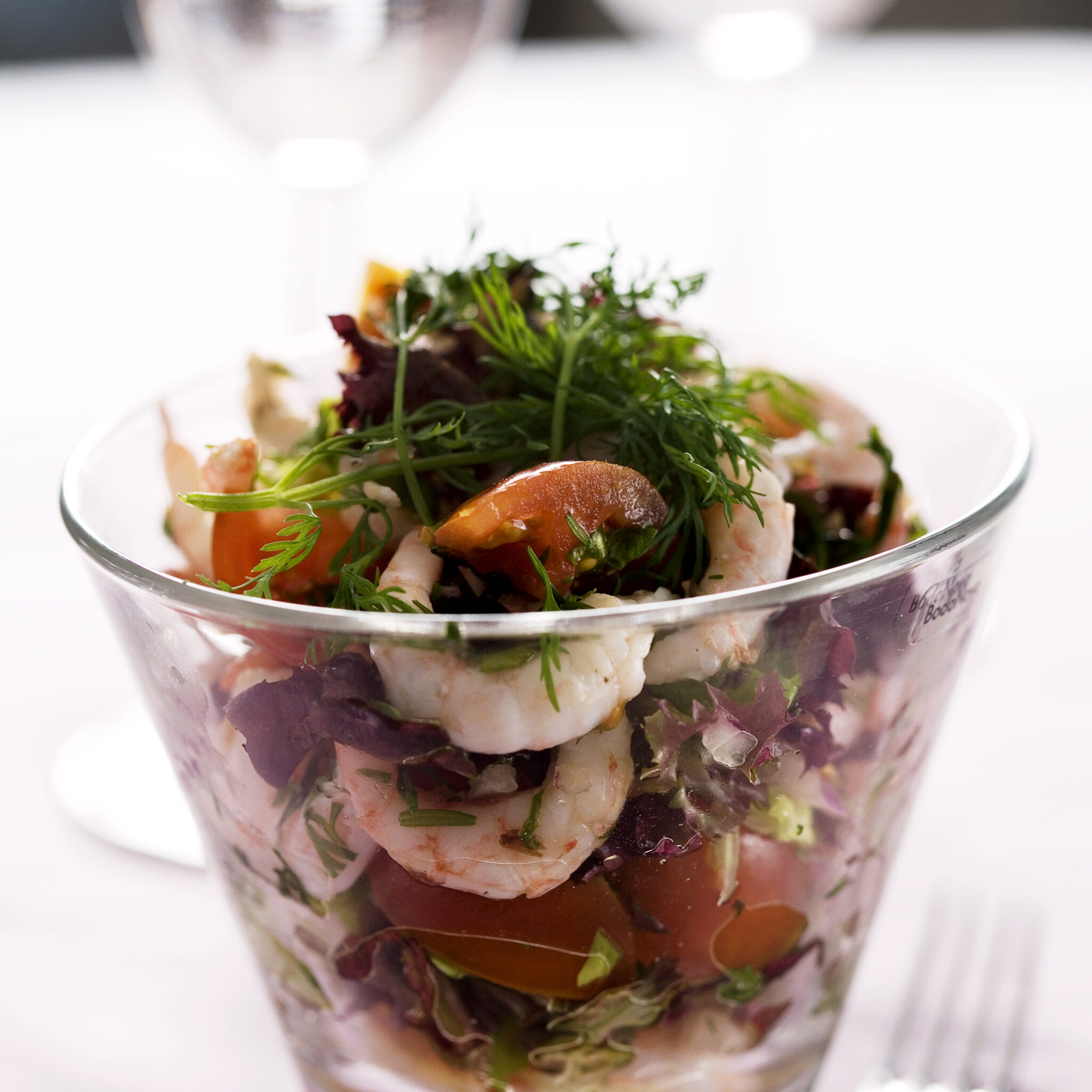 Räkcocktail med kräftstjärtar, löjrom och toast