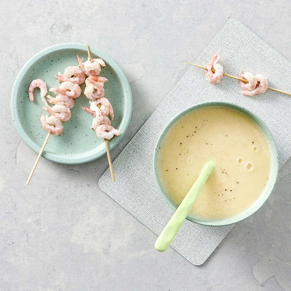 Asiatisk fänkålssoppa med räkor på spett