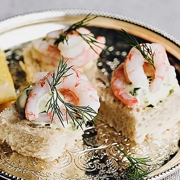Kanapée med räkor och basilikamajo