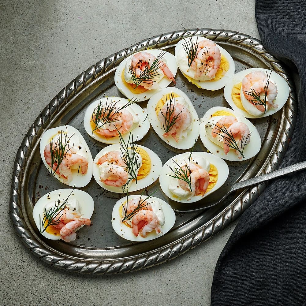 Ägghalvor med räk- och oströra