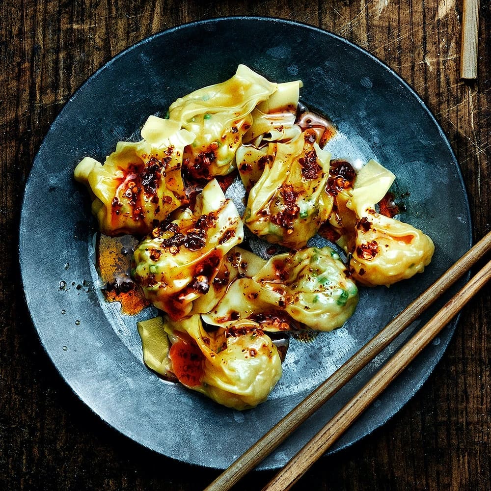 Wonton med räkor och chiliolja