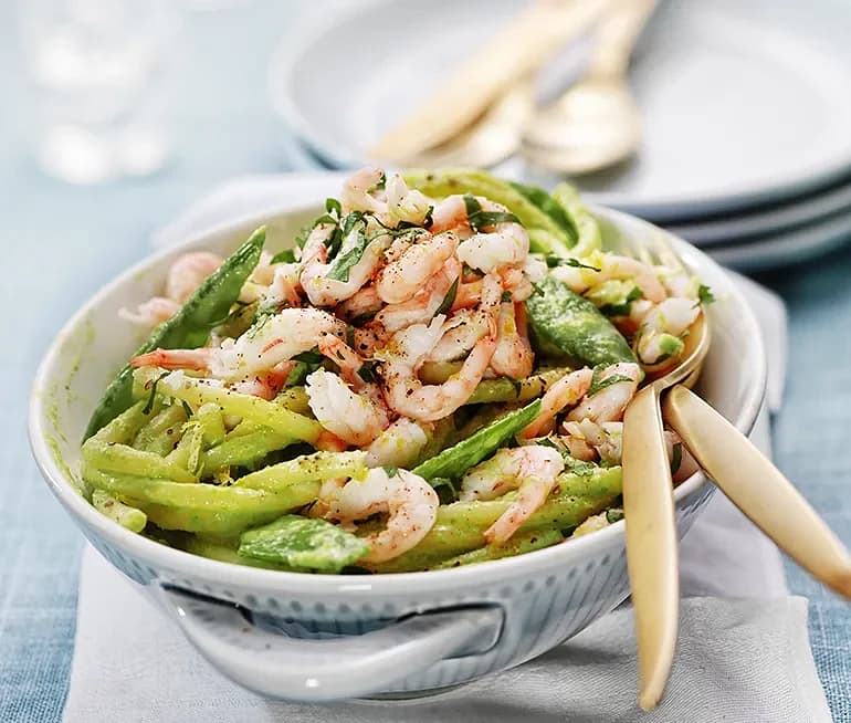 Grönärtspasta med räkor