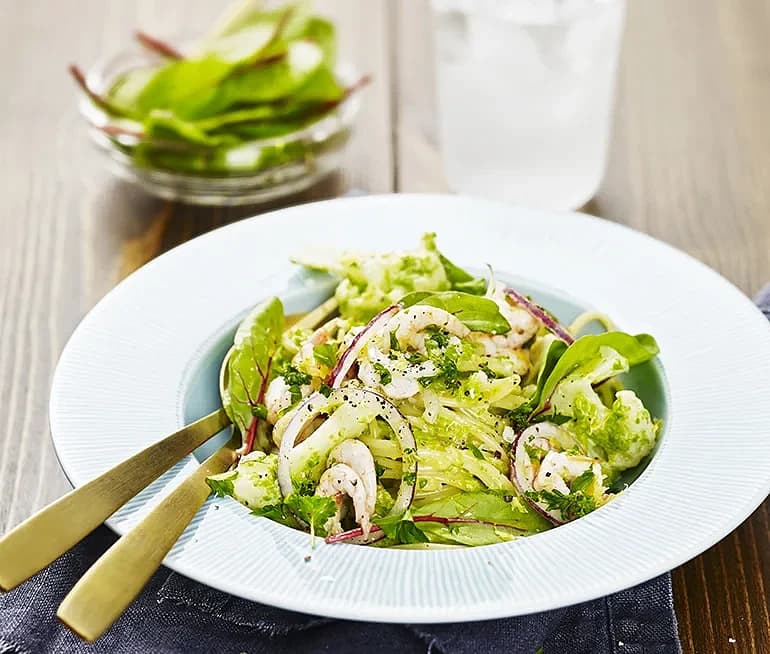 Glasnudelsallad med bläckfisk, räkor och limedressing